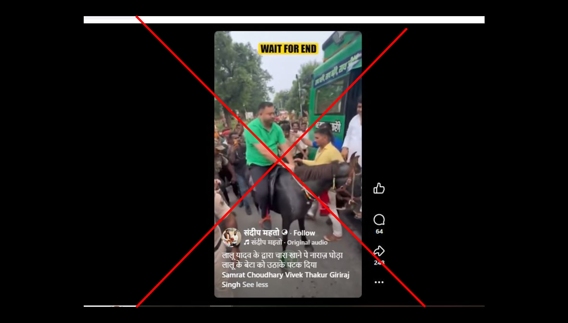 संदीप महतो नाम के फेसबुक यूजर ने लिखा “ लालू यादव के द्वारा चारा खाने पे नाराज घोड़ा लालू के बेटा को उठाके पटक दिया” पोस्ट का लिंक आप यहां और आर्काइव लिंक यहां देख सकते हैं।