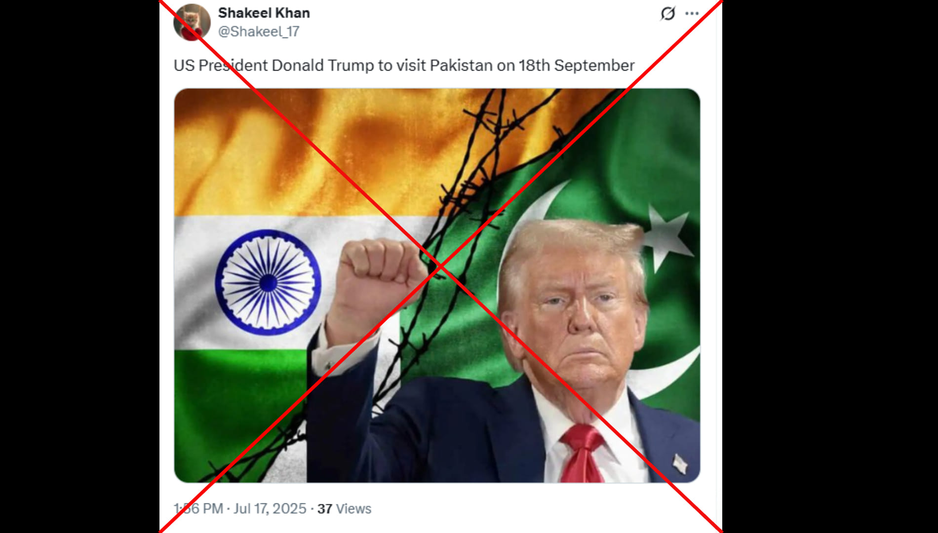 शकील खान (@Shakeel_17) नाम के एक्स यूजर ने लिखा “अमेरिकी राष्ट्रपति डोनाल्ड ट्रंप 18 सितंबर को पाकिस्तान का दौरा करेंगे। “ पोस्ट का लिंक आप यहां और आर्काइव लिंक यहां देख सकते हैं।