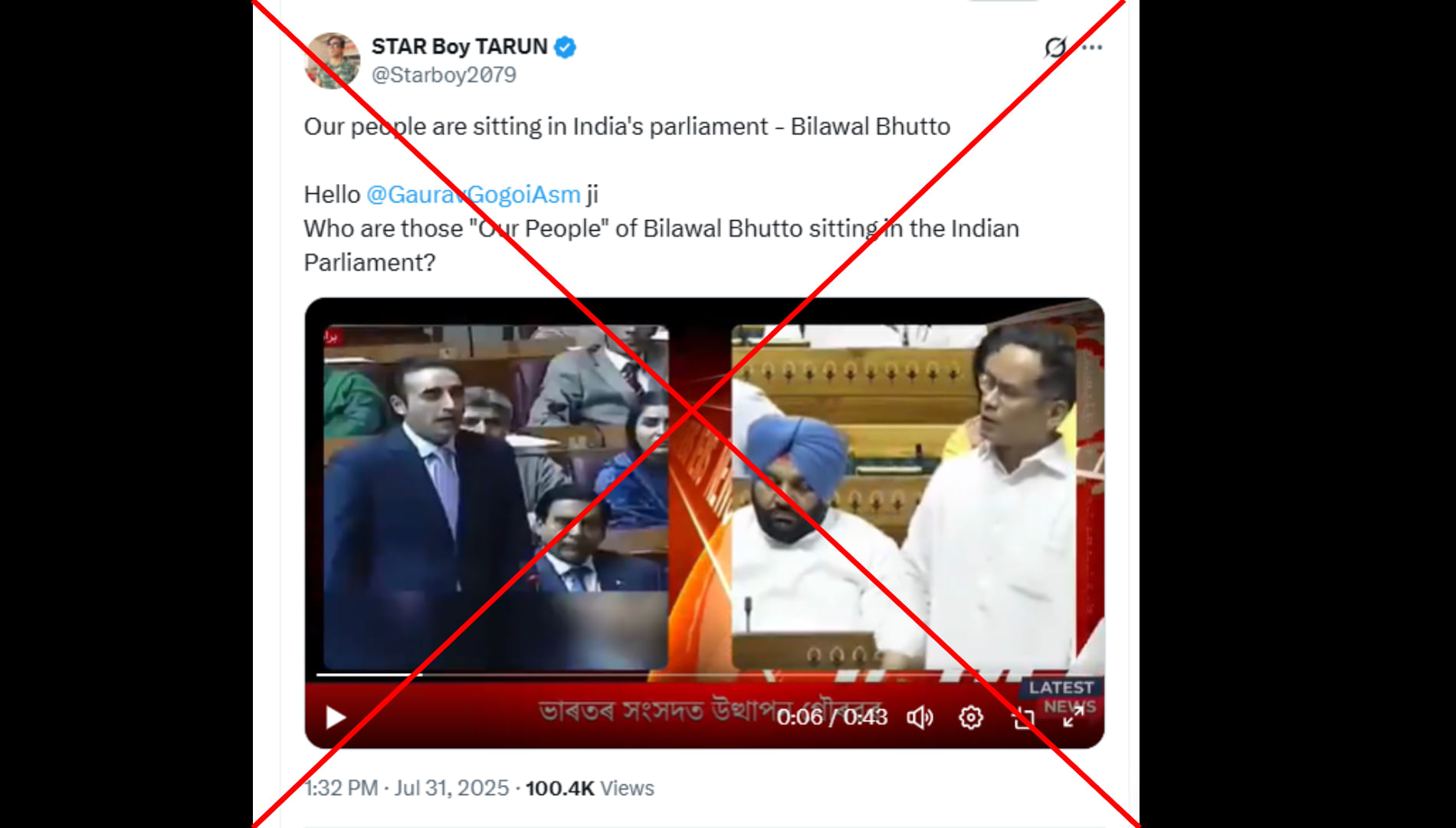 सोशल मीडिया पर एक वीडियो शेयर कर दावा किया जा रहा है कि बिलावल भुट्टो ने कहा है कि भारतीय संसद में भी उनके लोग बैठे हैं। सोशल मीडिया यूजर इस दावे को गौरव गोगोई से जोड़कर शेयर कर रहे हैं।
