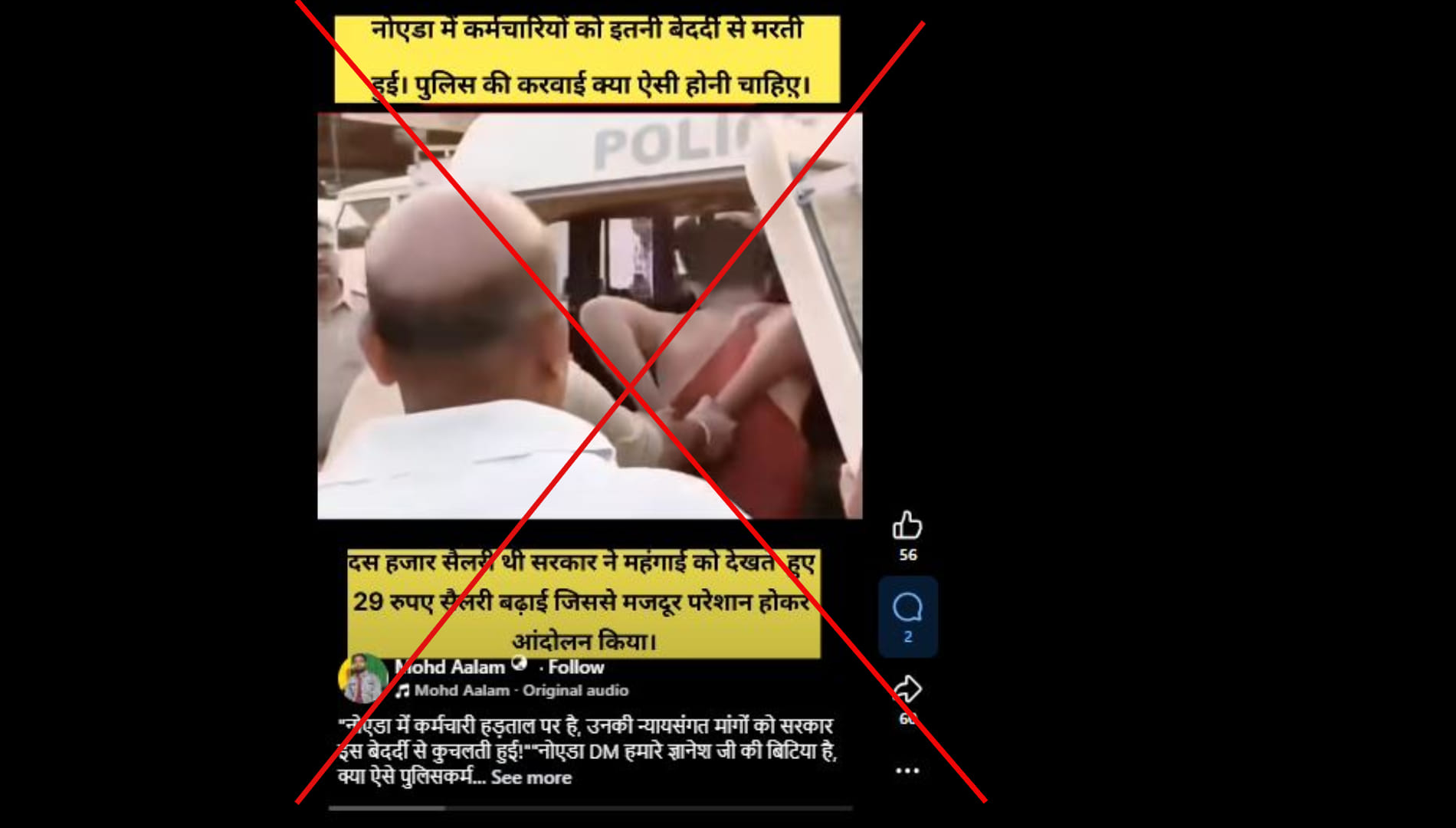 मोहम्मद आलम नाम के फेसबुक यूजर ने लिखा,”नोएडा में कर्मचारी हड़ताल पर हैं, उनकी न्यायसंगत मांगों को सरकार इस बेदर्दी से कुचलती हुई!””नोएडा DM हमारे ज्ञानेश जी की बिटिया है, क्या ऐसे पुलिसकर्मियों पर कोई कार्रवाई होगी?” पोस्ट का लिंक आप यहां और आर्काइव लिंक यहां देख सकते हैं।