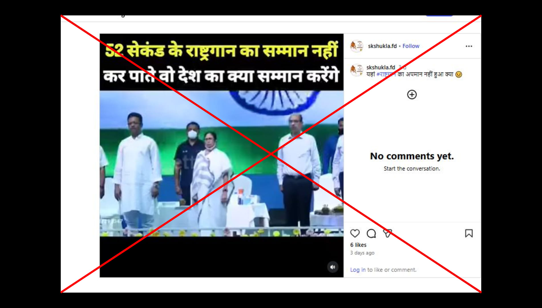सोशल मीडिया पर एक वीडियो शेयर कर दावा किया जा रहा है ति ममता बनर्जी ने राष्ट्रगान का अपमान किया है।