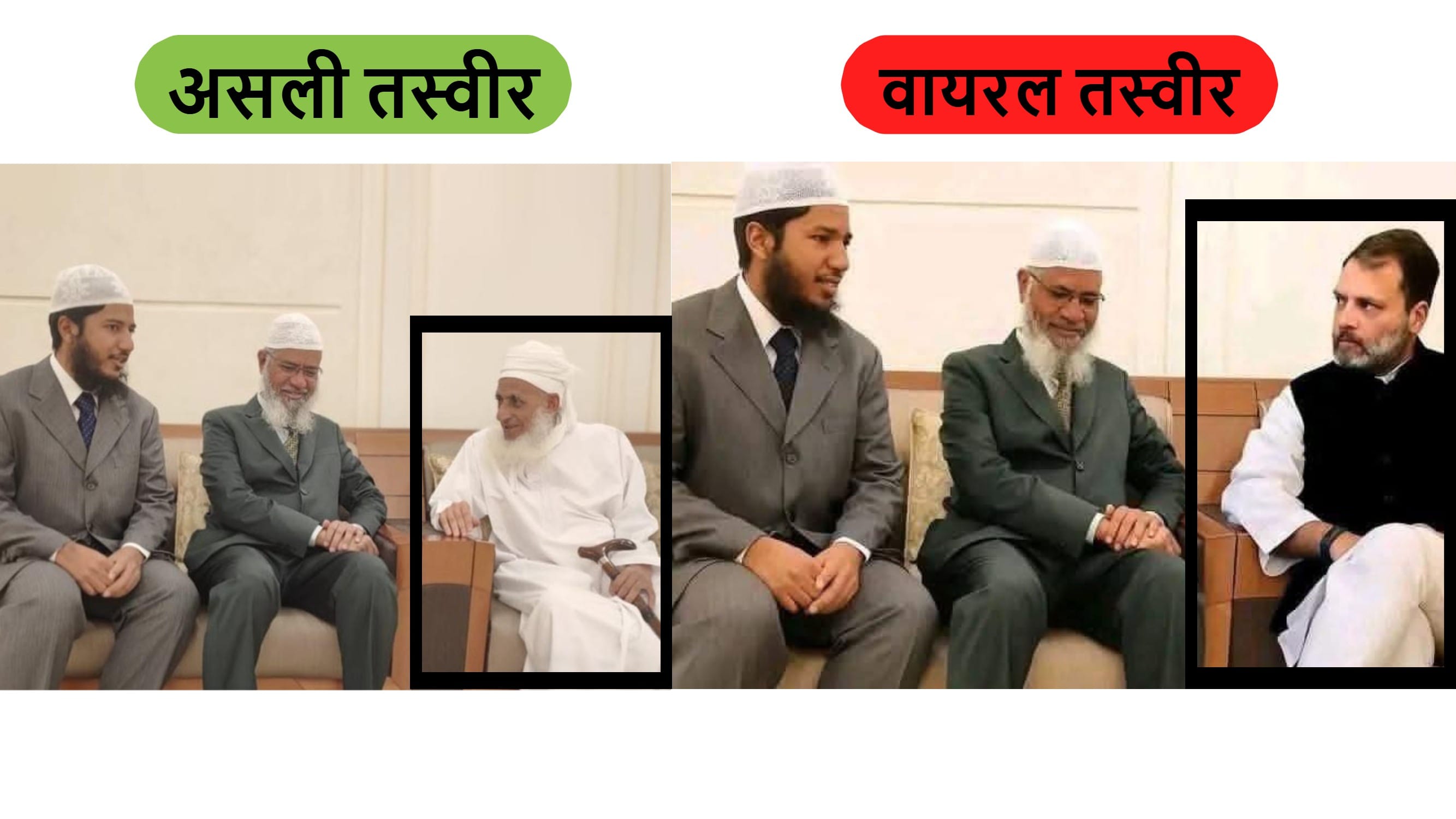 सोशल मीडिया पर एक तस्वीर वायरल हो रही है, जिसमें राहुल गांधी इस्लामिक प्रचारक और इस्लामिक रिसर्च फाउंडेशन के संस्थापक जाकिर नाइक से मिलते हुए नजर आ रहे हैं। दावा किया जा रहा है कि यह असली तस्वीर है, जिसमें राहुल गांधी मलयेशिया में जाकिर नाइक से मिलते हुए नजर आ रहे हैं।