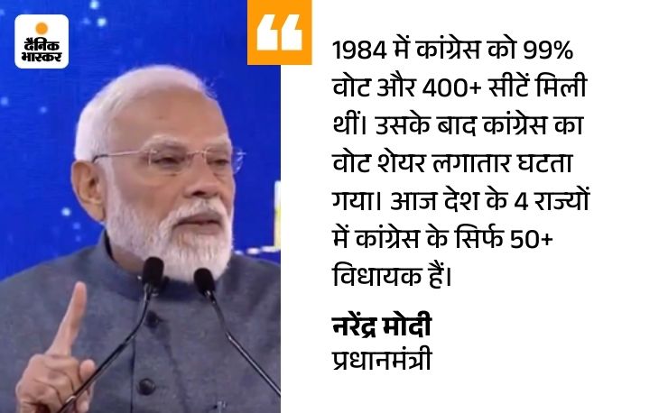 प्रधानमंत्री ने कांग्रेस की आलोचना करते हुए कहा- कांग्रेस के वोट चोरी नहीं हो रहे हैं, बल्कि देश की जनता अब कांग्रेस को वोट देने लायक नहीं समझती। यह सिलसिला 1984 के बाद शुरू हुआ।पहले तो मिलेनियल्स ने कांग्रेस को सबक सिखाया, और अब GEN-Z भी तैयार है।