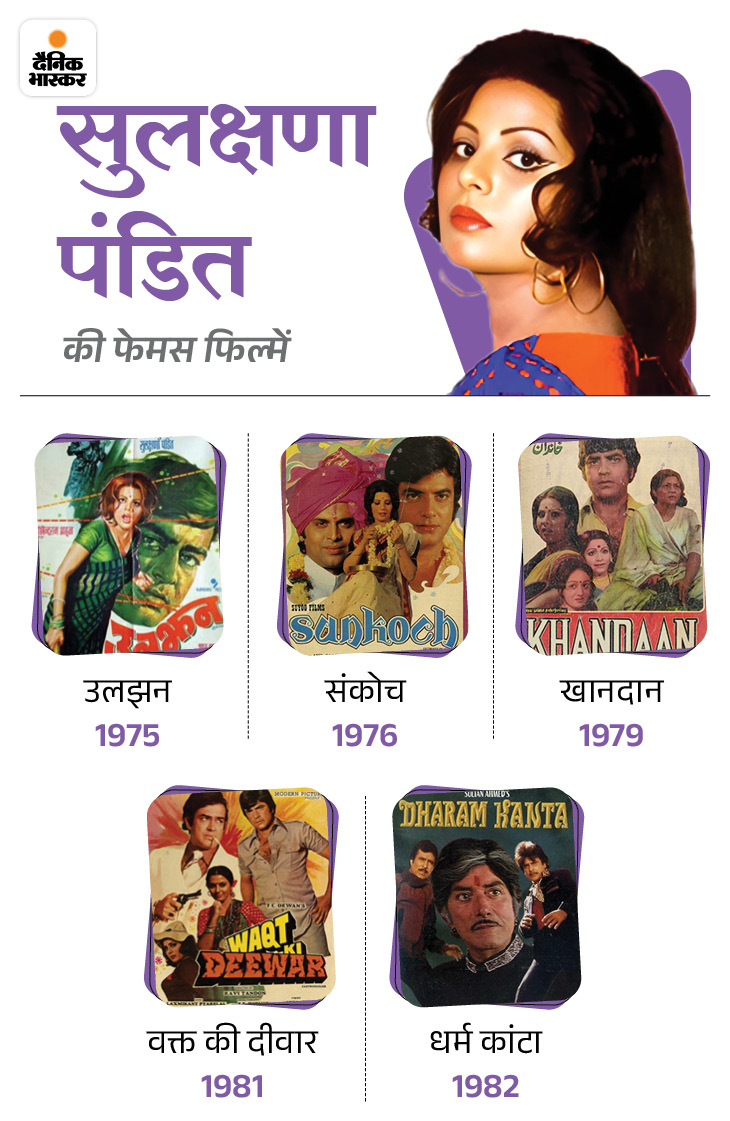 वहीं, सुलक्षणा पंडित का एक्टिंग करियर 1970 और शुरुआती 80 के दशक में अपने शिखर पर था। उस दौर में वे बॉलीवुड की जानी-मानी अभिनेत्रियों में से एक थीं। उन्होंने उस समय के लगभग सभी टॉप एक्टर्स के साथ काम किया।